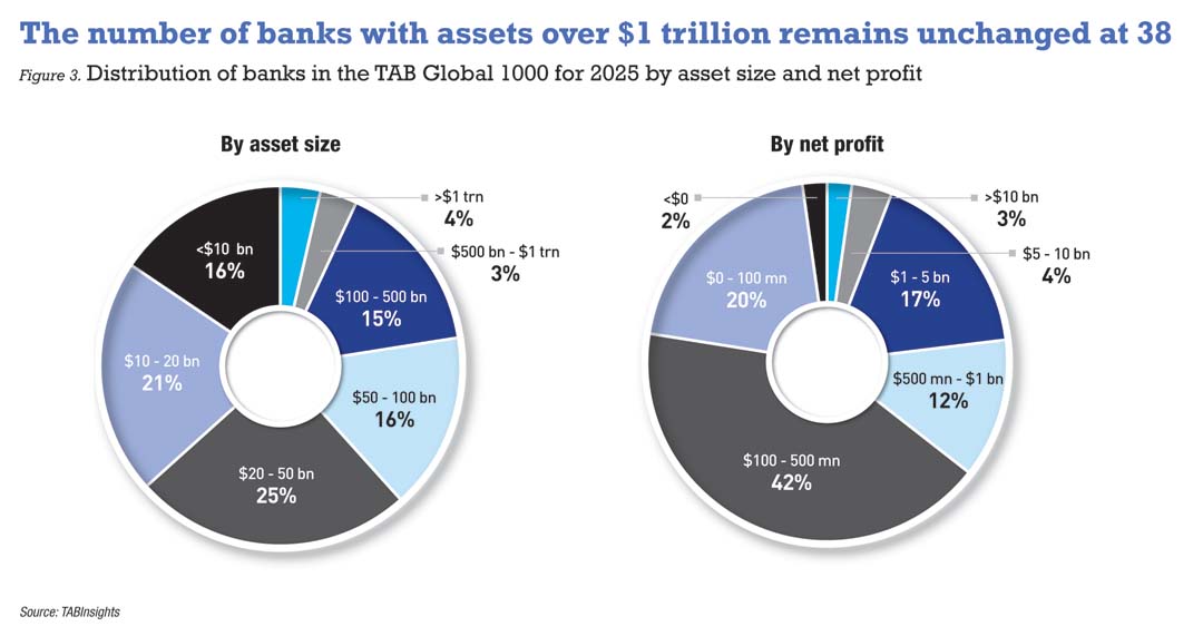 Overall, the 2025 TAB Global 1000 largest banks ranking highlights the continued dominance of Chinese and US institutions amid slower global growth, with pronounced regional differences in business models, performance and resilience. Global banking remains shaped by structural challenges, diverse strategies and evolving market conditions, pointing to a period of measured yet selective expansion worldwide.