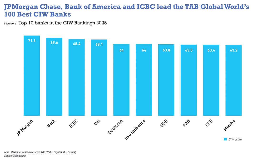Meanwhile, global-scale banks like JPMorgan Chase and ICBC maintain top positions despite moderate efficiency and returns, driven by dominant segment assets, product breadth and market presence. Together, these patterns indicate that TAB Global’s CIW rankings reward strategic balance across efficiency, profitability, and scale, rather than any single metric.